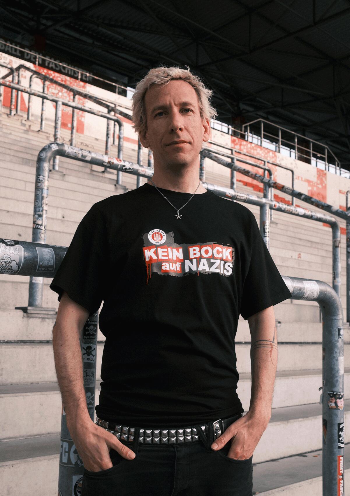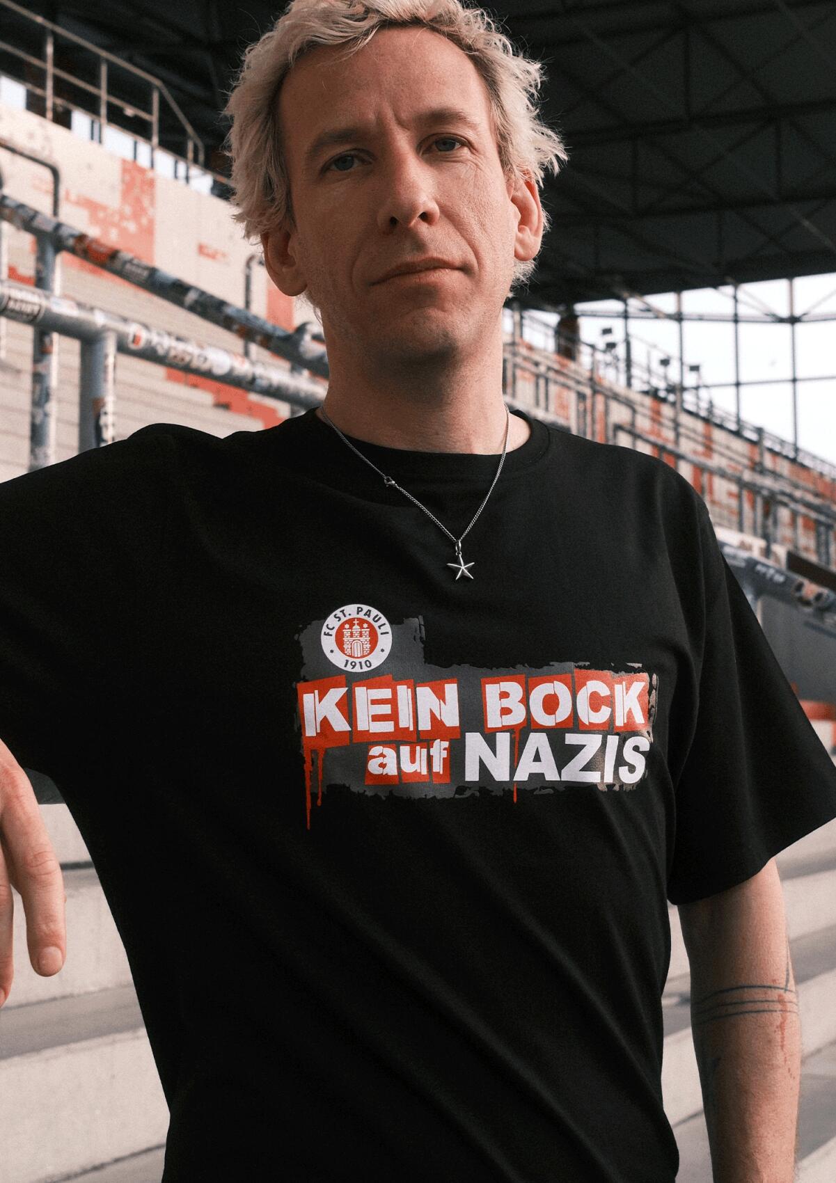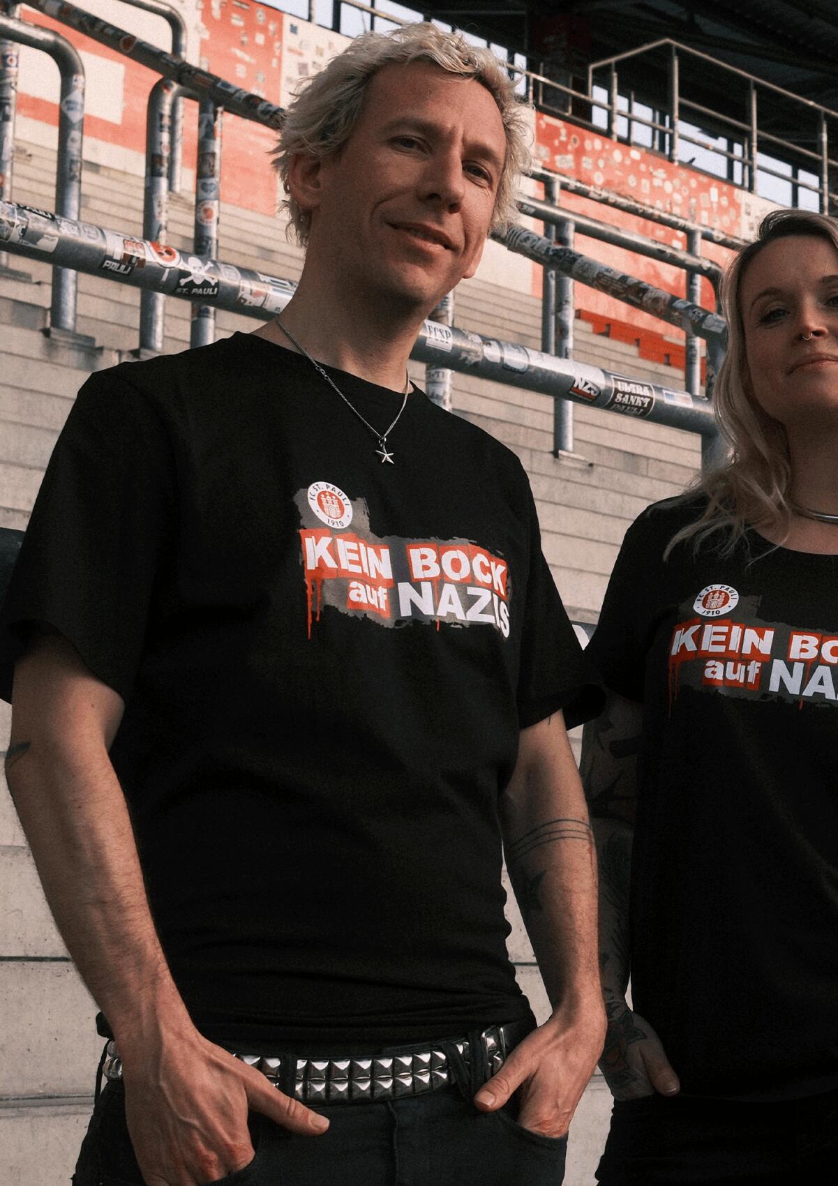 KEIN BOCK AUF NAZIS x FC ST. PAULI – gemeinsam gegen Rechtsextremismus, gegen Hass und Ausgrenzung sowie für eine offene Gesellschaft, in der Solidarität und Vielfalt selbstverständlich sind. Mit jedem Kauf unterstützt du den Kampf gegen Rechts: 5 Euro gehen direkt an die Initiative „Kein Bock auf Nazis“. Ein FC St. Pauli T-Shirt für alle, die zeigen wollen, wofür der Verein steht: Haltung, Solidarität und eine klare Kante gegen Rechts.