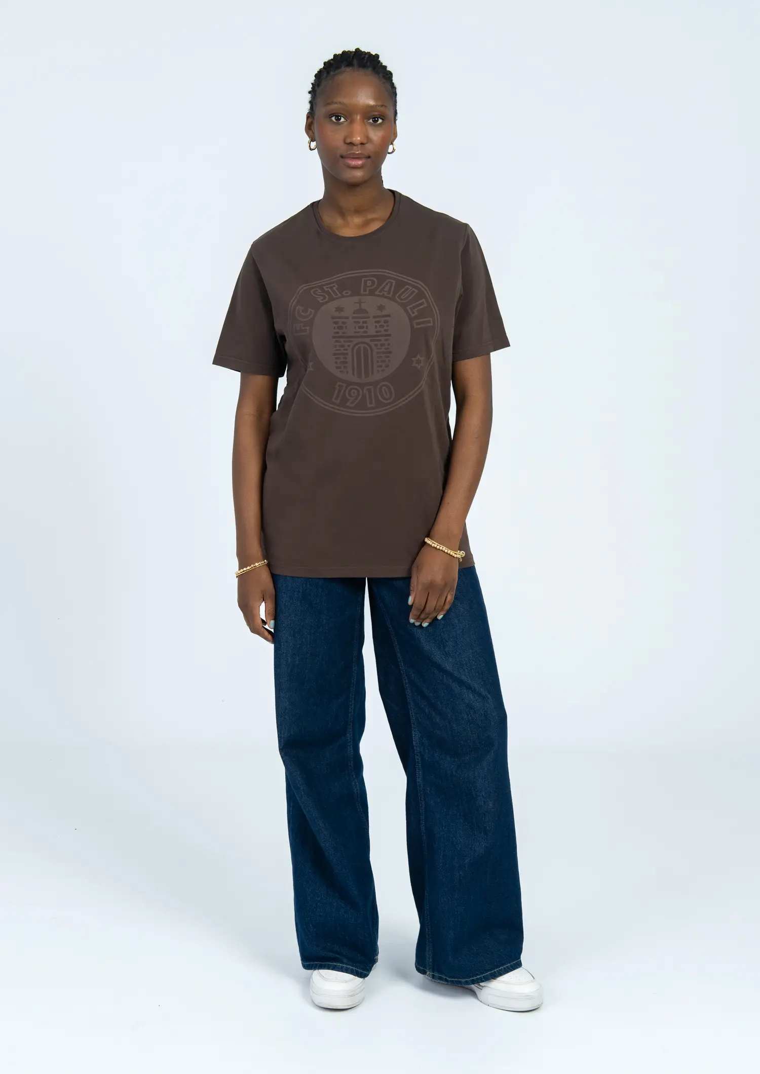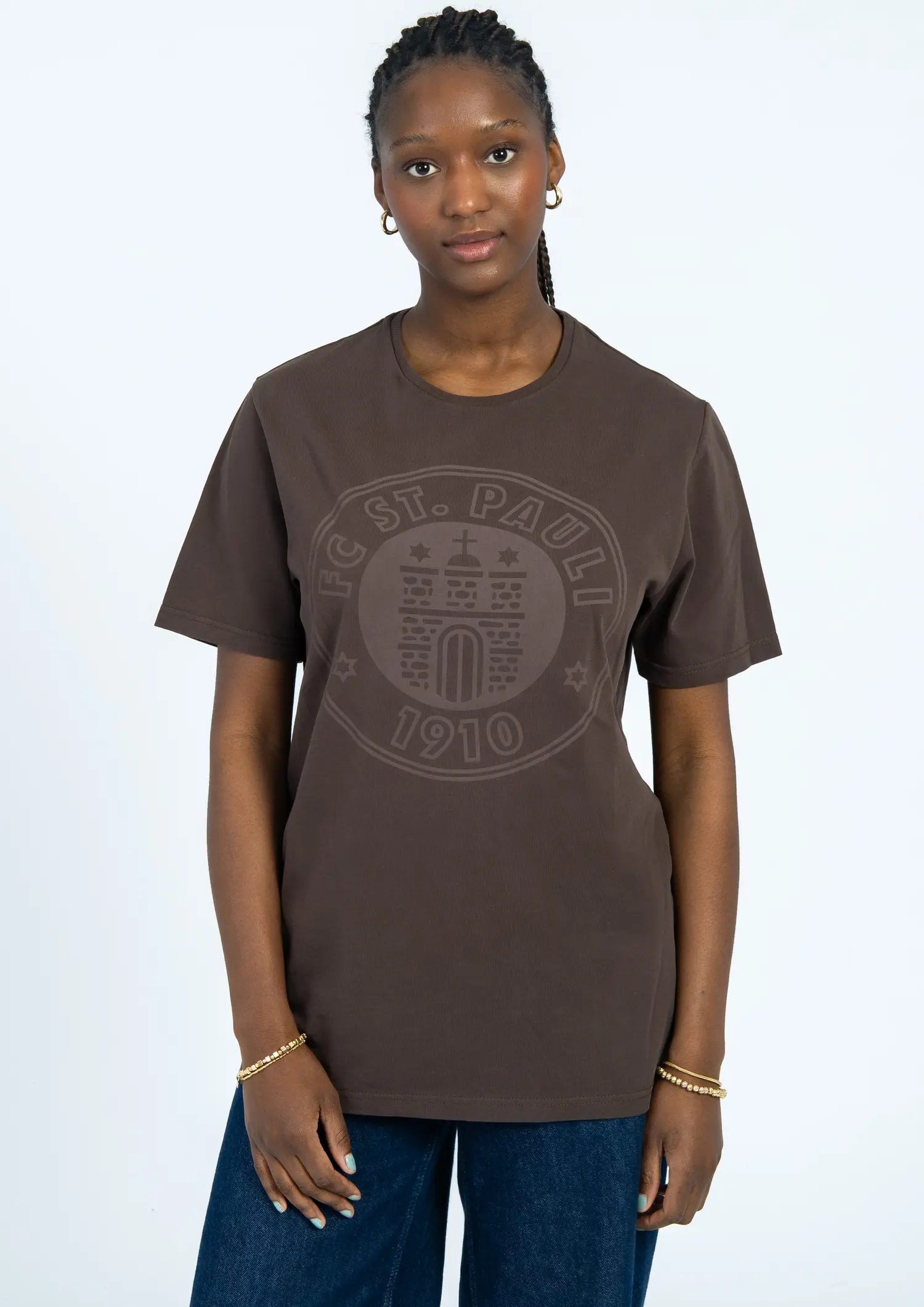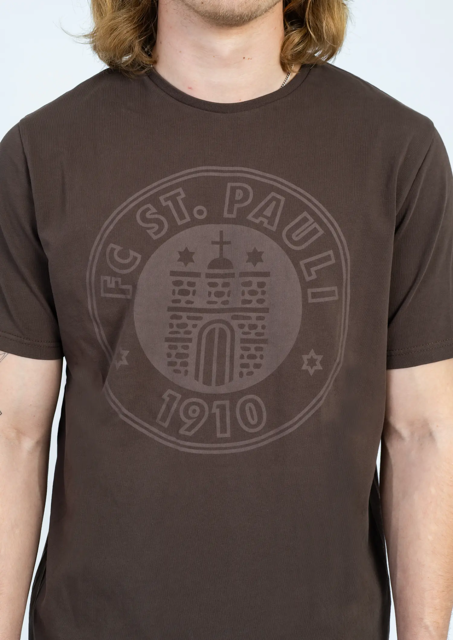 Kiezstyle in Reinform: Das dunkelbraune FC St. Pauli T-Shirt kommt mit einem tonalen 3D-Frontdruck, der ein Statement setzt, ohne laut zu sein. Der gerade Schnitt sorgt für lockeren Sitz, die 100% Bio-Baumwolle für ein gutes Gefühl auf der Haut – egal ob vorm Spiel, auf dem Kiez oder beim Abhängen mit der Crew. Schlicht.Stark. St. Pauli.