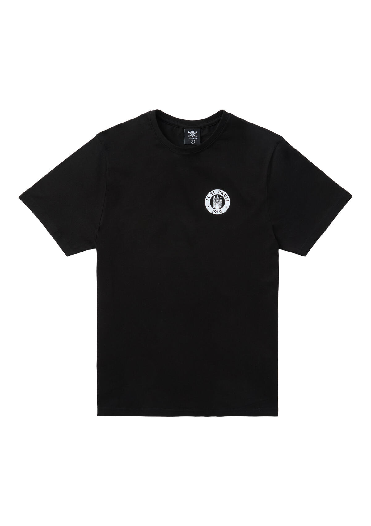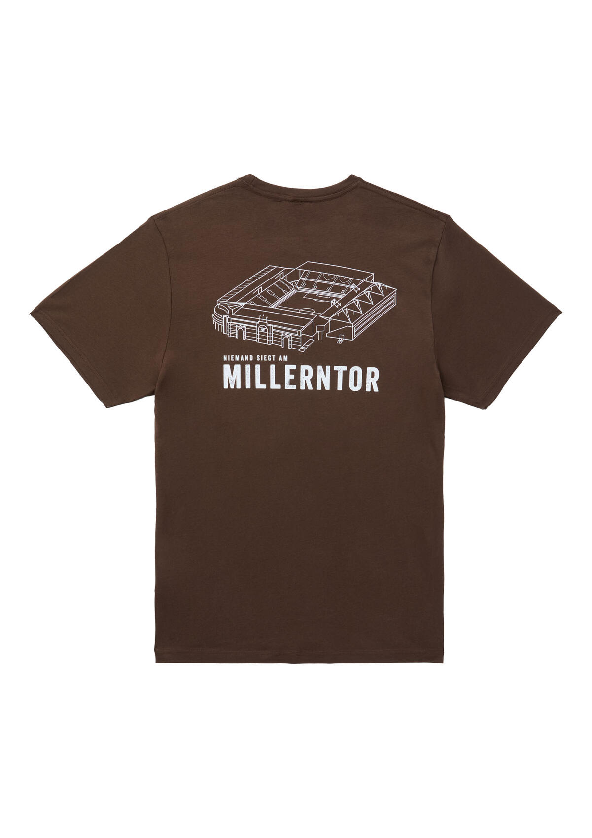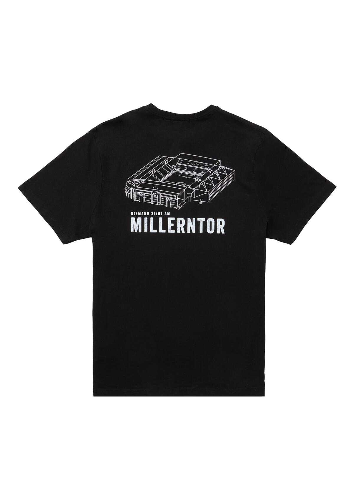 Hommage an unseren legendären Fußballtempel - das schwarze T-Shirt "Millerntor" kommt vorne clean mit kleinem FC St. Pauli Wappen, hinten knallt das die feine Grafik des Millerntor-Stadions mit der Ansage: "Niemand siegt am Millerntor". 100% FairTrade Biobaumwolle für echte Kiezkicker, die ihre Heimat zwischen Bunker und Kiez im Herzen von Hamburg haben - im wunderschönen Millerntor-Stadion.