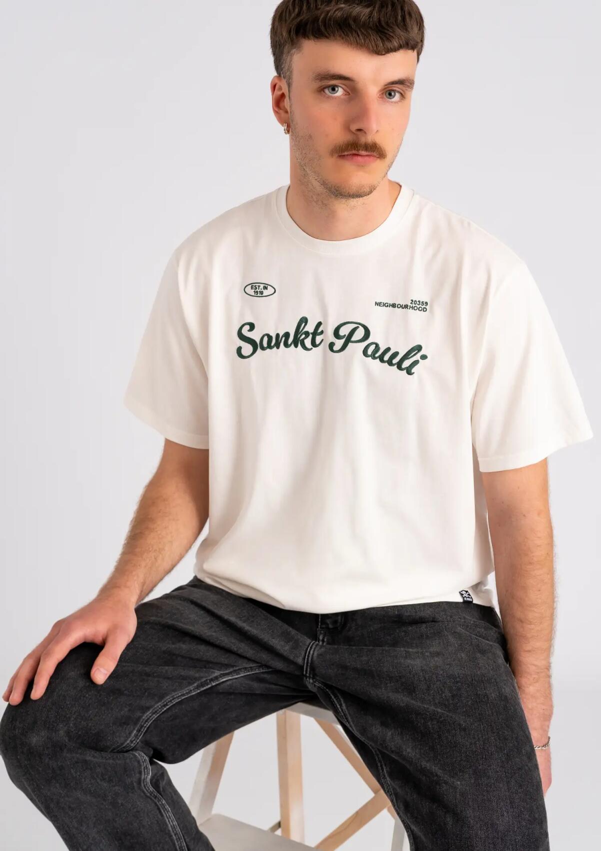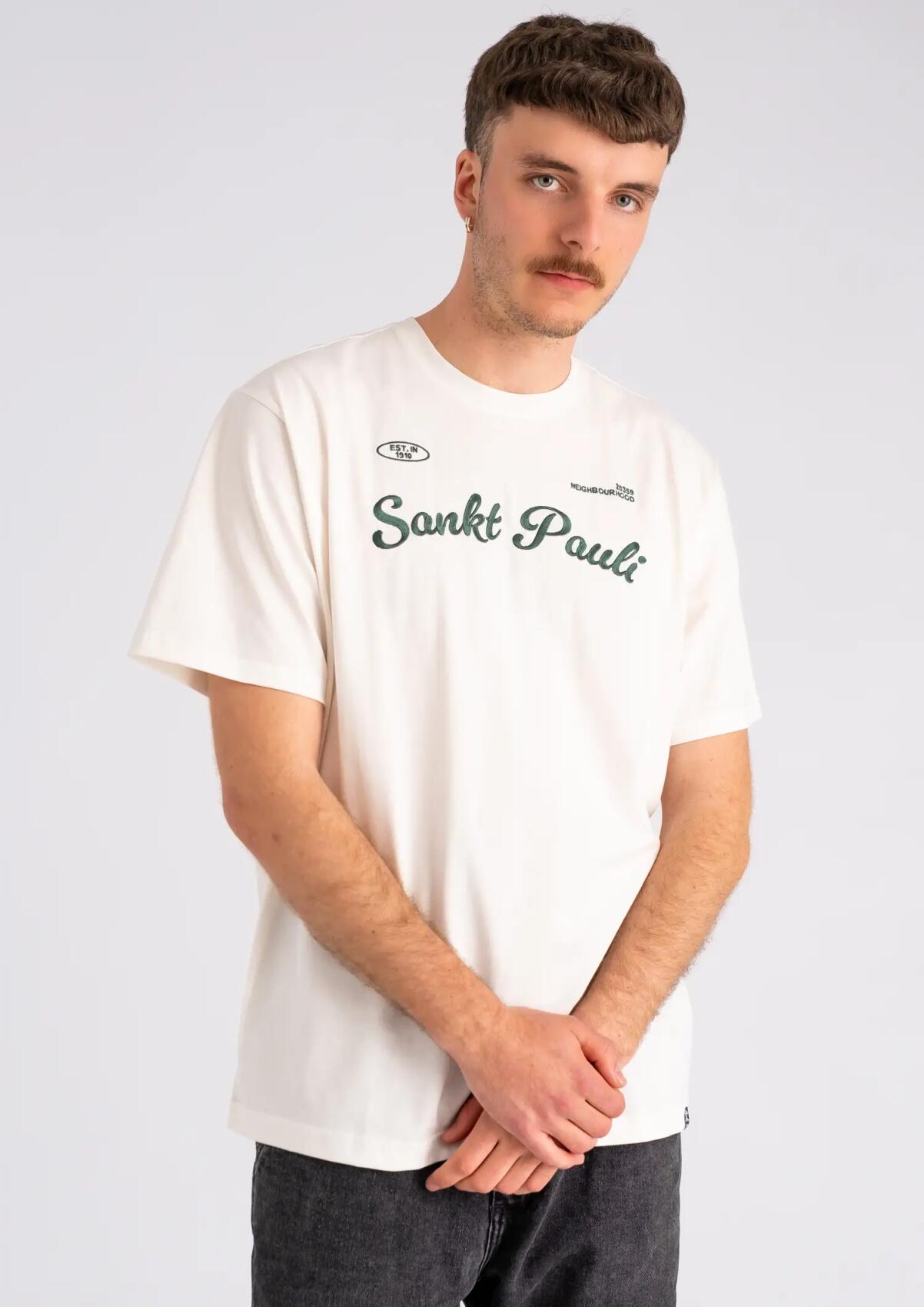 Klassisch, klar, Kiez: Das FC St. Pauli T-Shirt „Retro College“ bringt geradlinigen College-Style mit einer Portion Kiezattitüde. Der geschwungene „Sankt Pauli“-Print auf der Brust, kombiniert mit cleanem Weiß und dunkelgrünen Details, macht das Shirt zu einem echten Statement – auf dem Campus, im Viertel oder auf den Rängen. Gefertigt aus 100% Bio-Baumwolle, trägt es sich so angenehm wie es aussieht. Für Boys in Brown, die auch im Alltag Haltung zeigen.