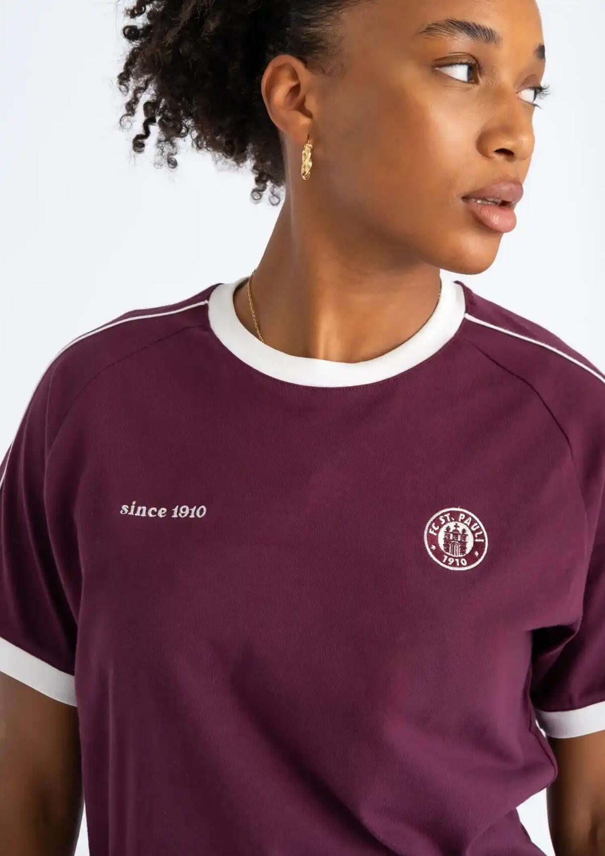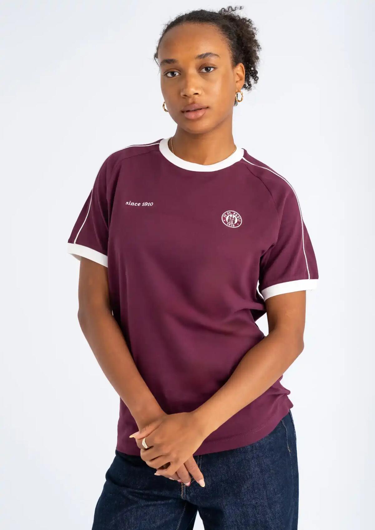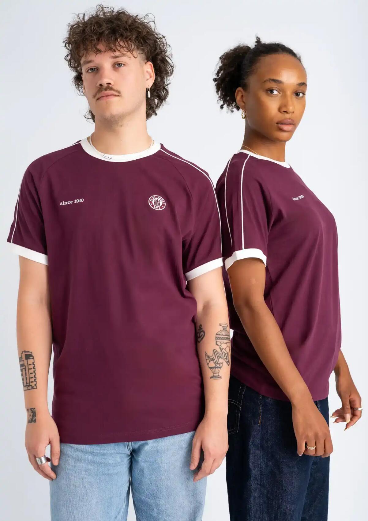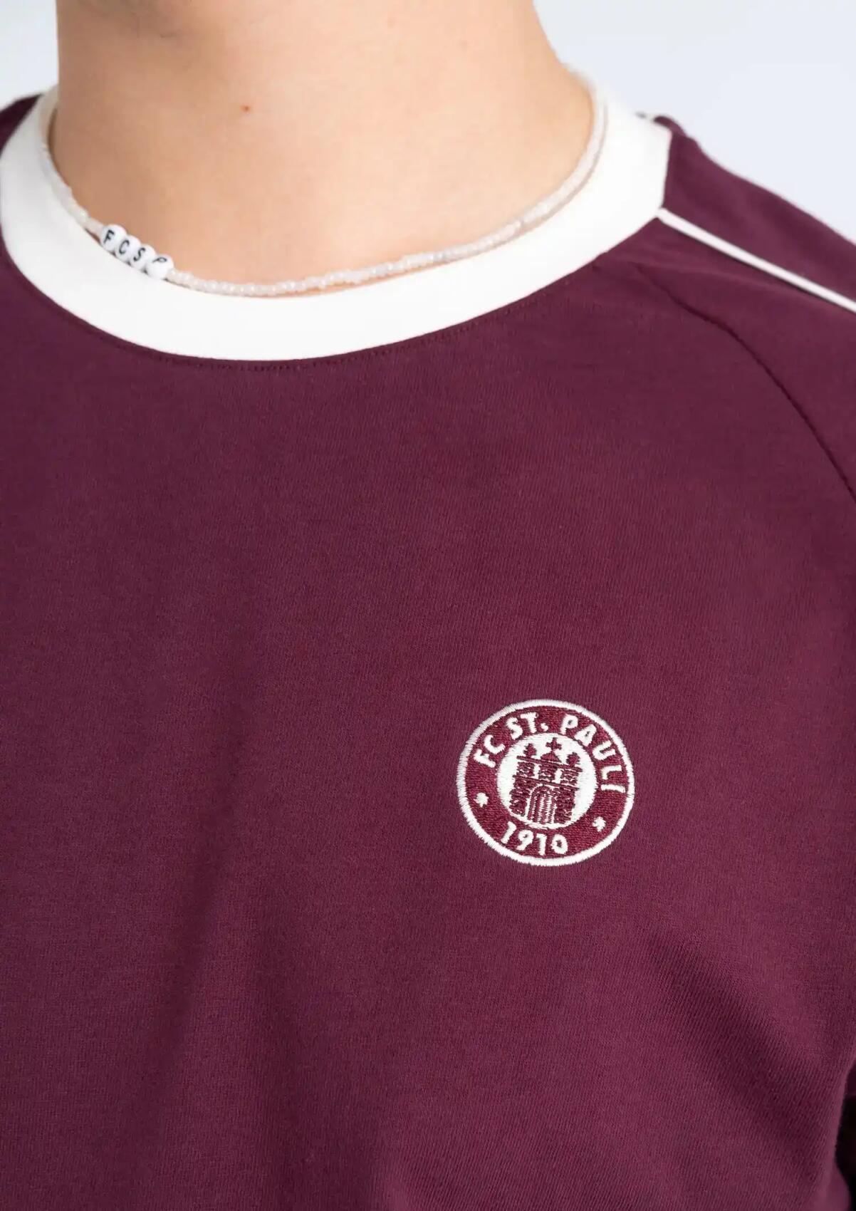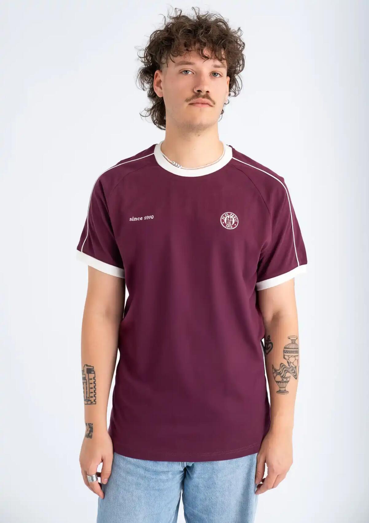 Oldschool trifft Gegenwart: Das "Retro Sport" T-Shirt in Aubergine bringt dir den Kiezkicker-Look auf den Punkt. Weiße Kontraste an Kragen und Ärmeln, FC St. Pauli Wappen auf der Brust und „since 1910“ als klares Statement – das Shirt atmet Geschichte. Ob beim Spiel, auf dem Kiez oder unterwegs in Hamburg – mit diesem Teil zeigst du, für wen dein Herz schlägt: die Boys in Brown.