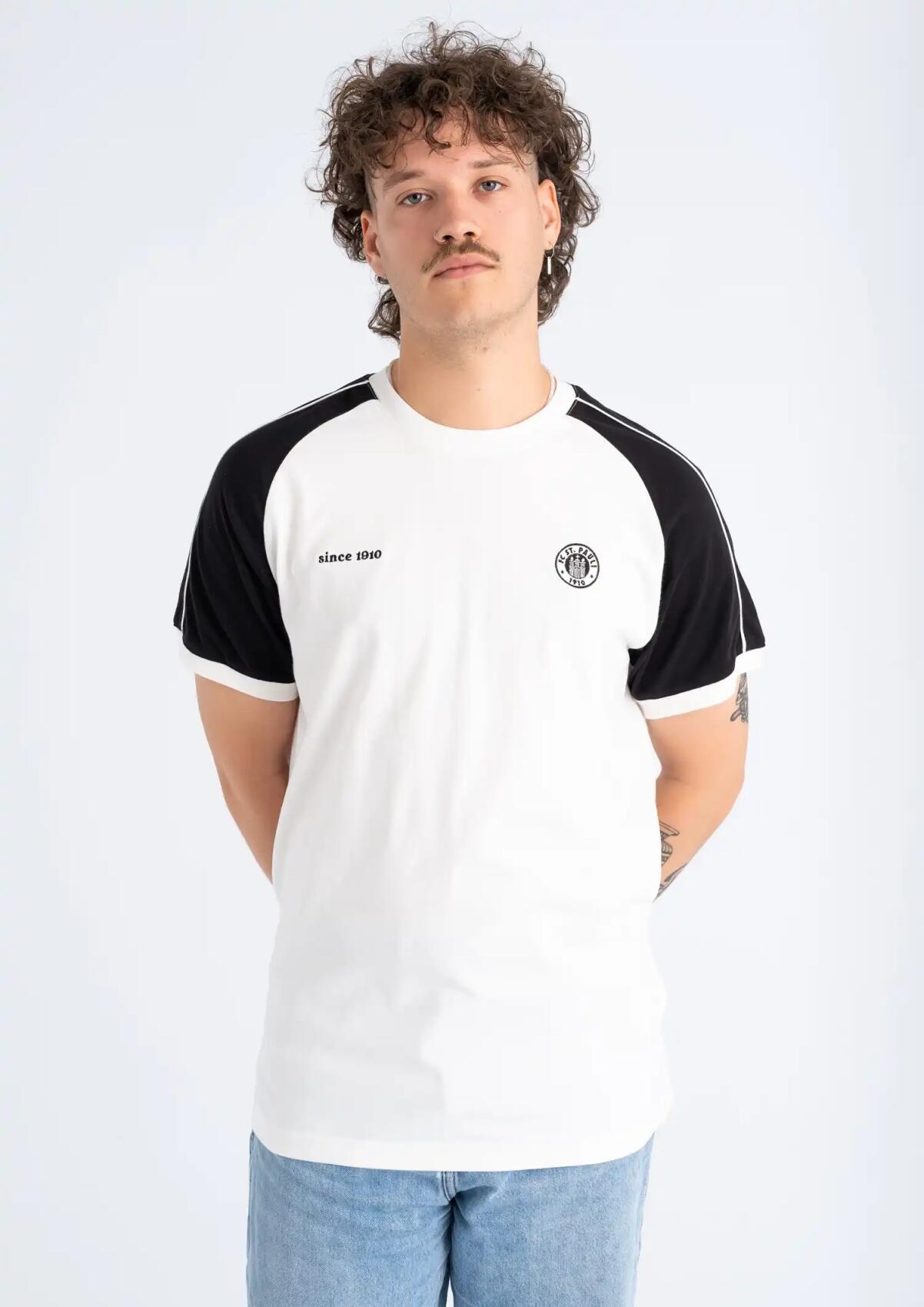 Klare Kante, klassischer Look: Das "Retro Sport" T-Shirt in Offwhite setzt mit schwarzen Raglanärmeln, feinen Kontrastpaspeln und dem FC St. Pauli Logo ein starkes Zeichen. „Since 1910“ auf der Brust steht für echte Vereinsliebe – ungeschönt, direkt und unverkennbar. Das Shirt bringt den Stil der Boys in Brown straight auf die Straße – für Spieltag und Alltag.