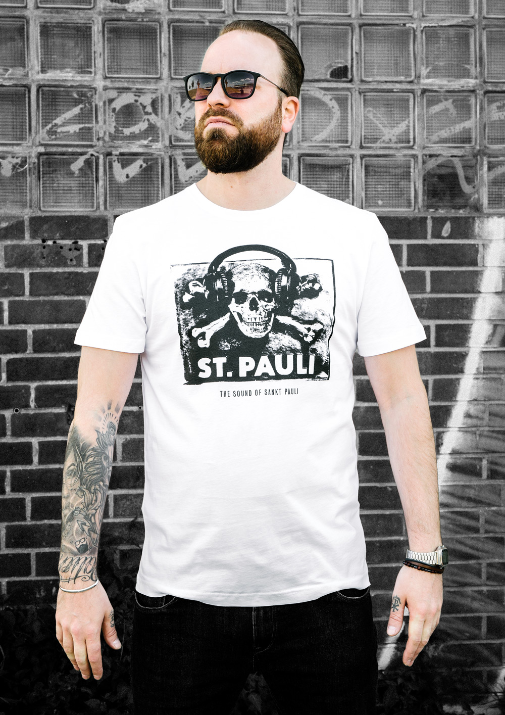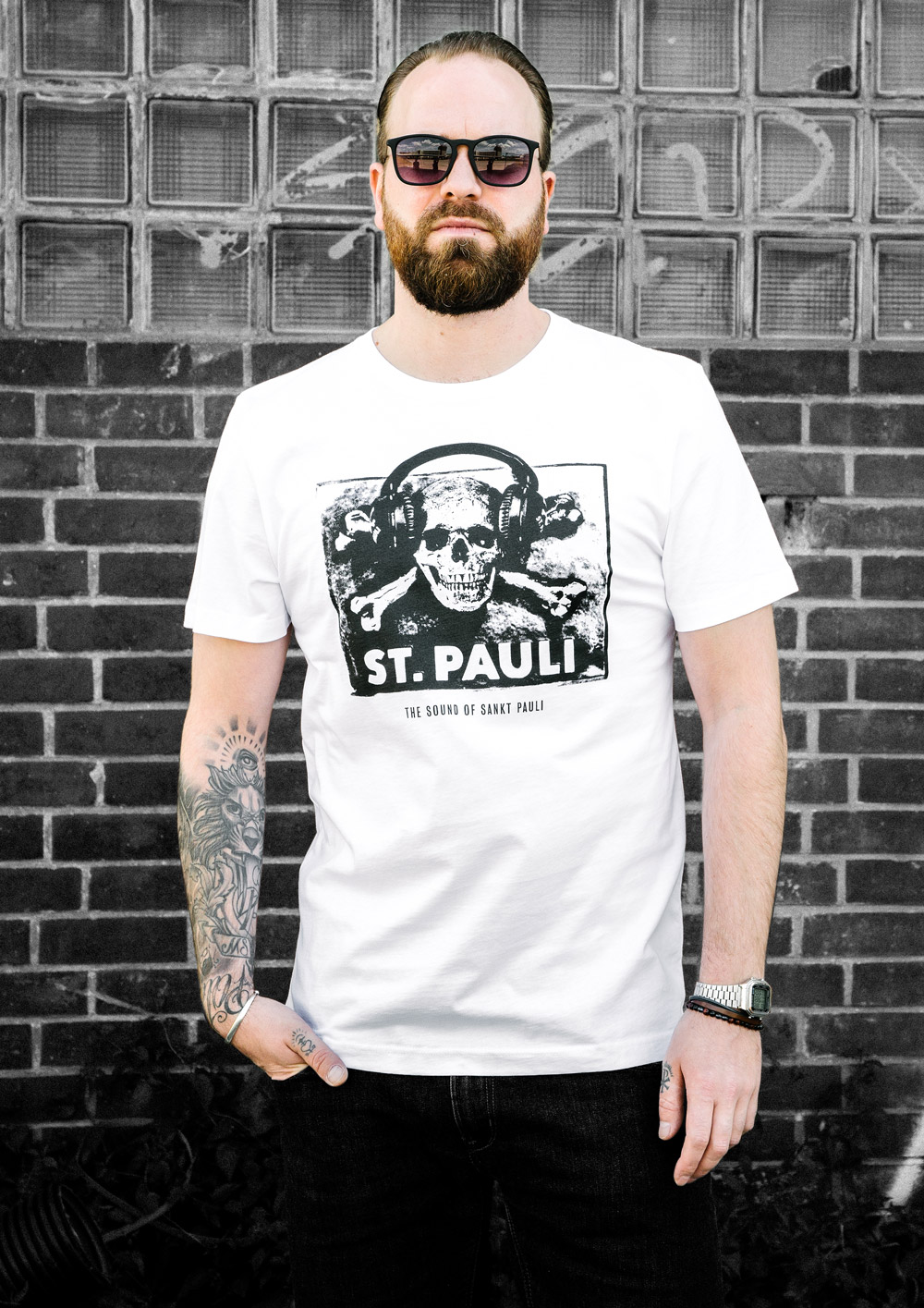 Bring den Klang des FC St. Pauli auf die Straße! Das weiße T-Shirt "Sound" zeigt den legendären Totenkopf mit Kopfhörern und den Schriftzug "St. Pauli". Darunter prangt das Motto: "The Sound of Sankt Pauli". Perfekt für alle, die Musik, Style und die Kiezkultur verbinden wollen. Mit bequemem Schnitt und hochwertigem Material ist dieses Shirt dein idealer Begleiter –ob im Stadion oder in der City.