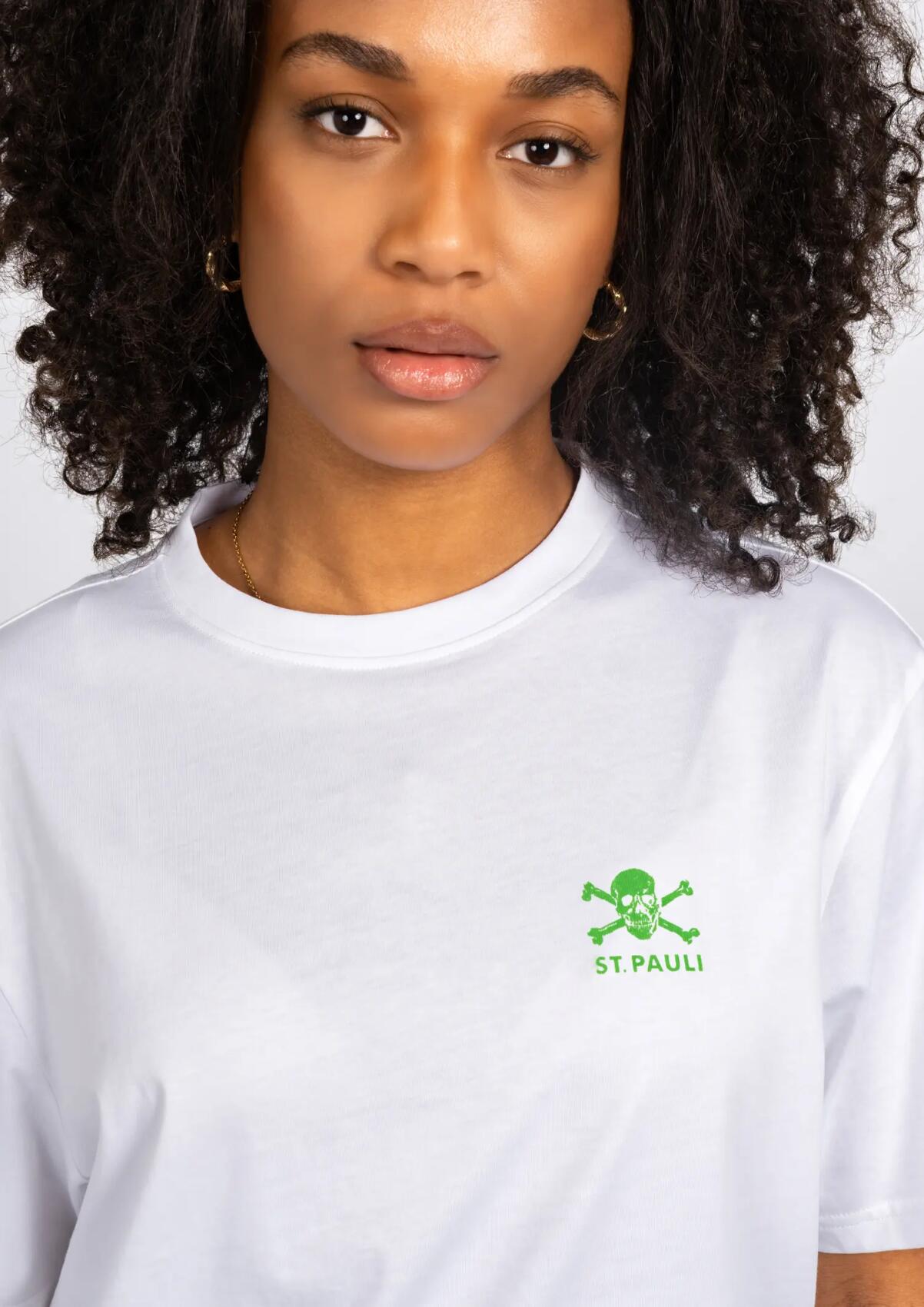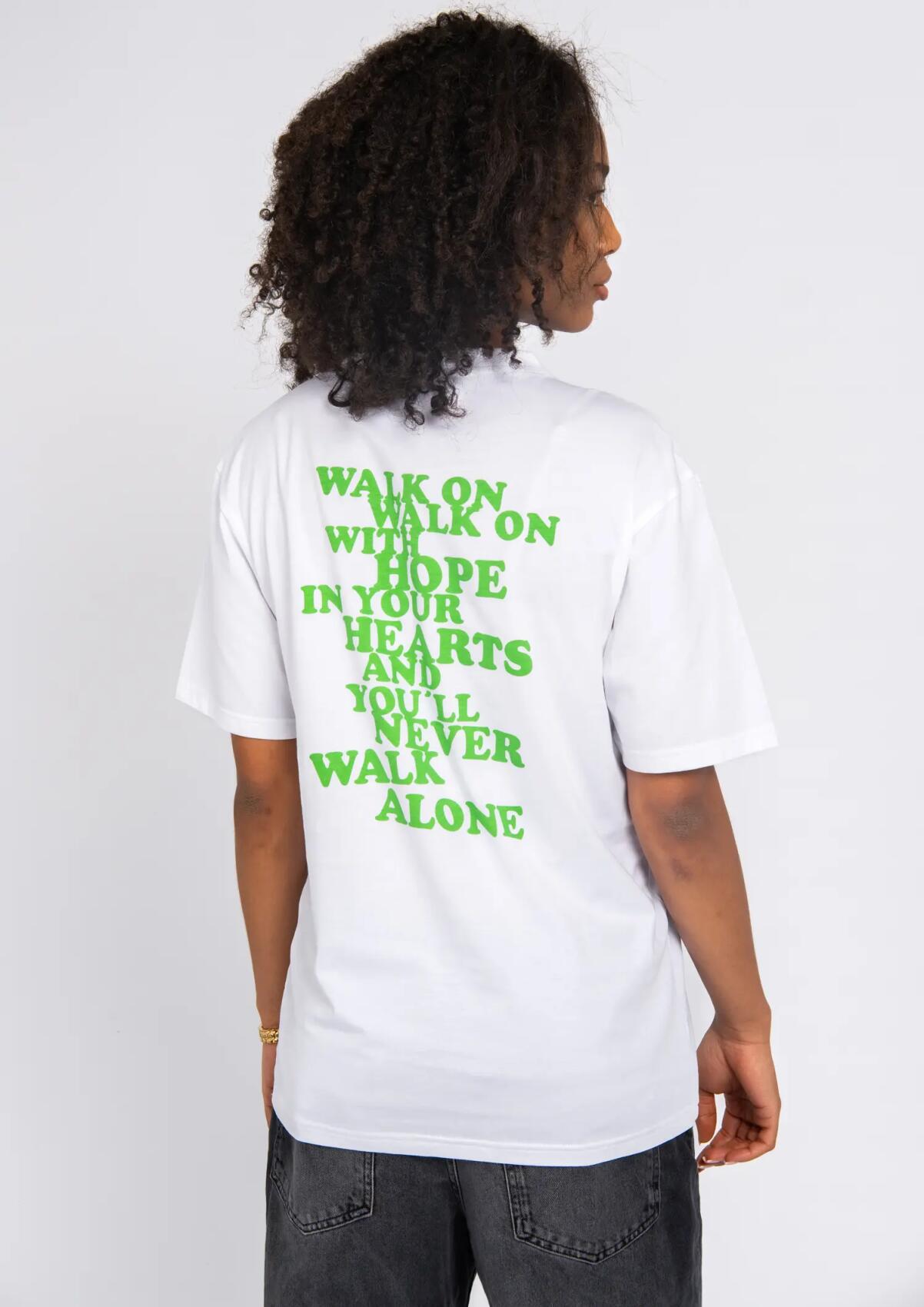 Für alle, die niemals alleine gehen: Das FC St. Pauli T-Shirt „Walk On“ zeigt vorne dezent den grünen Totenkopf mit ST. PAULI Schriftzug und hinten die legendären Worte „Walk on, walk on with hope in your hearts and you'll never walk alone“. Hergestellt aus 100 % Bio-Baumwolle in cleanem Weiß – fair, nachhaltig und angenehm zu tragen. Ob am Spieltag oder im Alltag, mit diesem Shirt trägst du die Botschaft immerbei dir.
