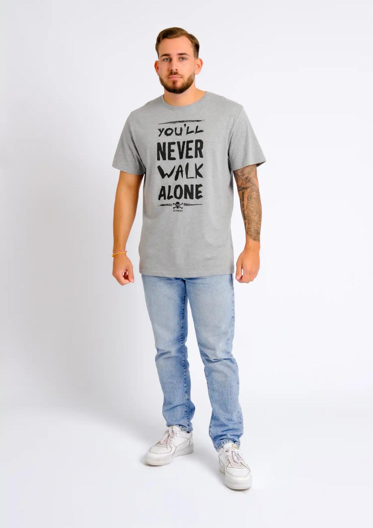 Sein wir ehrlich. Eigentlich nur offiziell an der Anfield-Road, mit Abstrichen aber auch in Paradise, aber hierzulande nur am Millerntor wirklich zu Hause. Und das schon seit über 20 Jahren. 2016er Variante der nie sterbenden St.Pauli-Hymne. Hier in der grauen Variante. Klassisches Rundhals-Shirt aus 160 gr Baumwoll-Polyester-Gemisch mit großem Frontmotiv im Siebdruck. Idee by paulo, umgesetzt by Francesco. Entwickelt und gedruckt in Hamburg.
