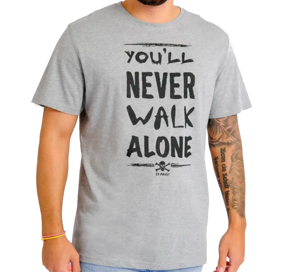 Sein wir ehrlich. Eigentlich nur offiziell an der Anfield-Road, mit Abstrichen aber auch in Paradise, aber hierzulande nur am Millerntor wirklich zu Hause. Und das schon seit über 20 Jahren. 2016er Variante der nie sterbenden St.Pauli-Hymne. Hier in der grauen Variante. Klassisches Rundhals-Shirt aus 100% Biobaumwolle mit großem Frontmotiv im Siebdruck. Idee by paulo, umgesetzt by Francesco. Entwickelt und gedruckt in Hamburg.