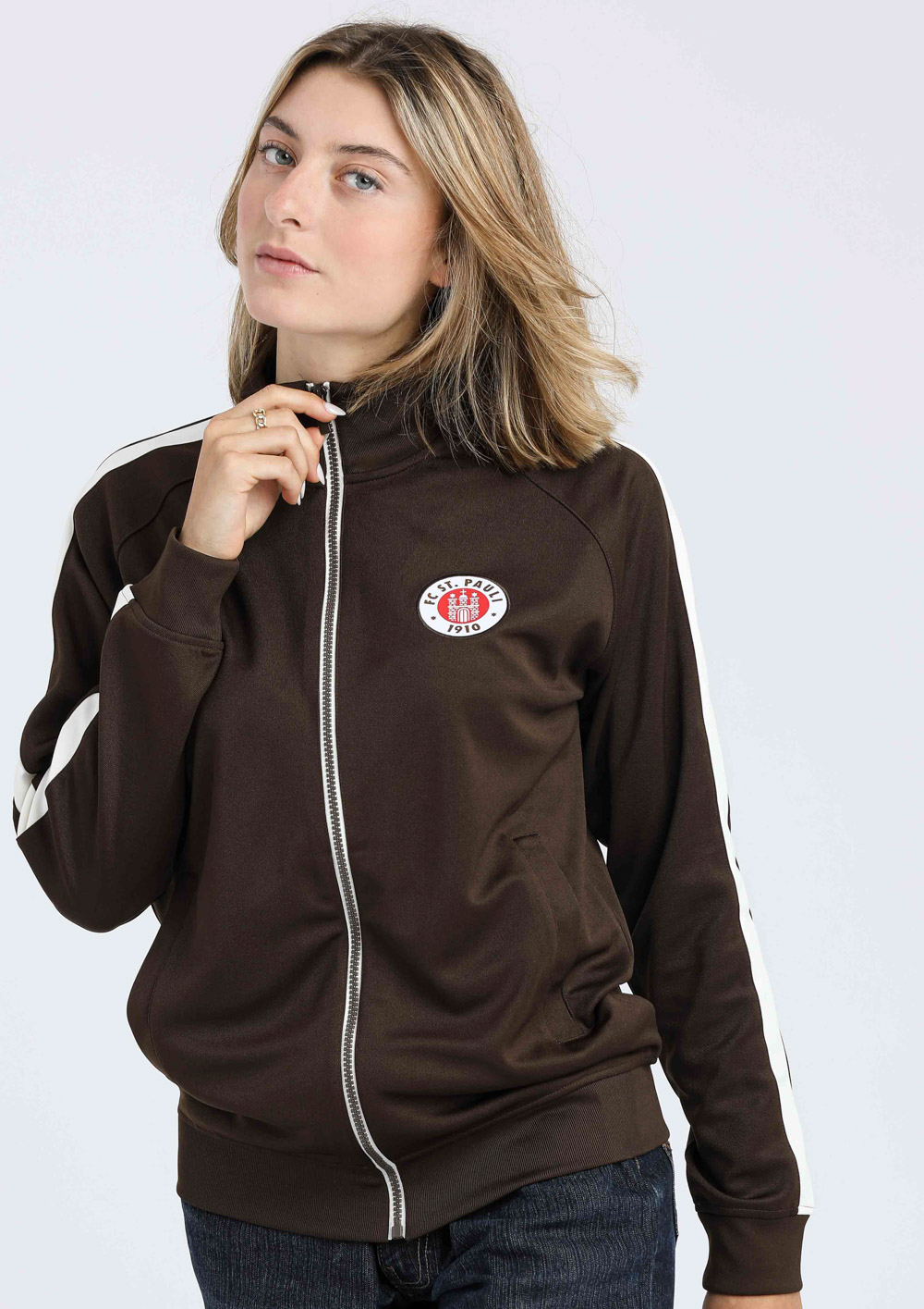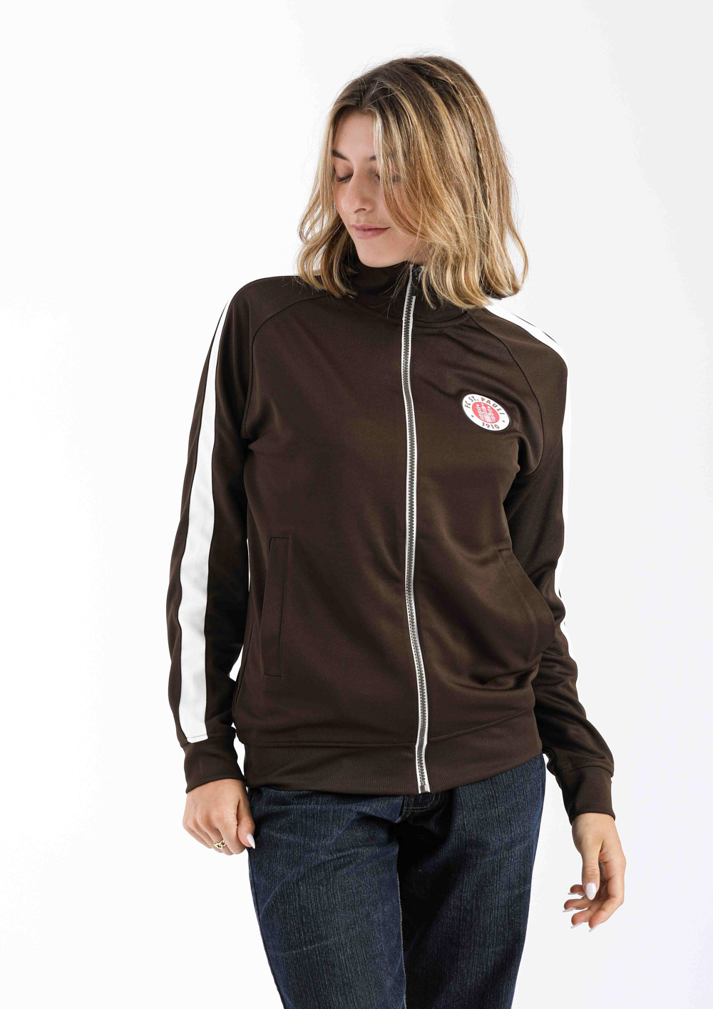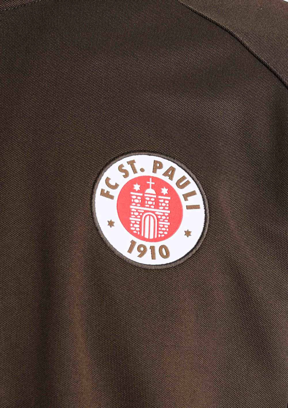 Die FC St. Pauli Trainingsjacke "Logo 2023" verbindet sportlichen Style mit urbanem Streetwear-Vibe. Mit dem klassischen Vereinslogo auf der Brust und den markanten Streifen an den Ärmeln bringst du den Kiezkicker-Spirit in deinen Alltag. Die braune Jacke ist ein echter Hingucker, egal ob beim Training, auf der Straße oder beim entspannten Treffen mit Freunden. Dank ihres zeitlosen Designs lässt sie sich vielseitig kombinieren und zeigt immer deine Liebe zum FC St. Pauli. Ein Must-have für Fans, die Sport und Streetwear zu ihrem Style machen.