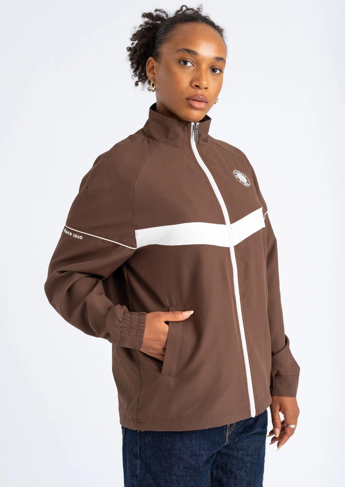 Klassisch, sportlich, St. Pauli: Die Trainingsjacke "Logo Braun" überzeugt mit weißem Kontrasteinsatz und gesticktem FC St. Pauli Wappen auf der Brust. Der durchgehende Zipper und der lockere Schnitt machen sie zum perfekten Begleiter für Spieltage, Alltag oder Auswärtstour. Dezent gehalten, aber mit klarer Botschaft – für echte Kiezkicker.