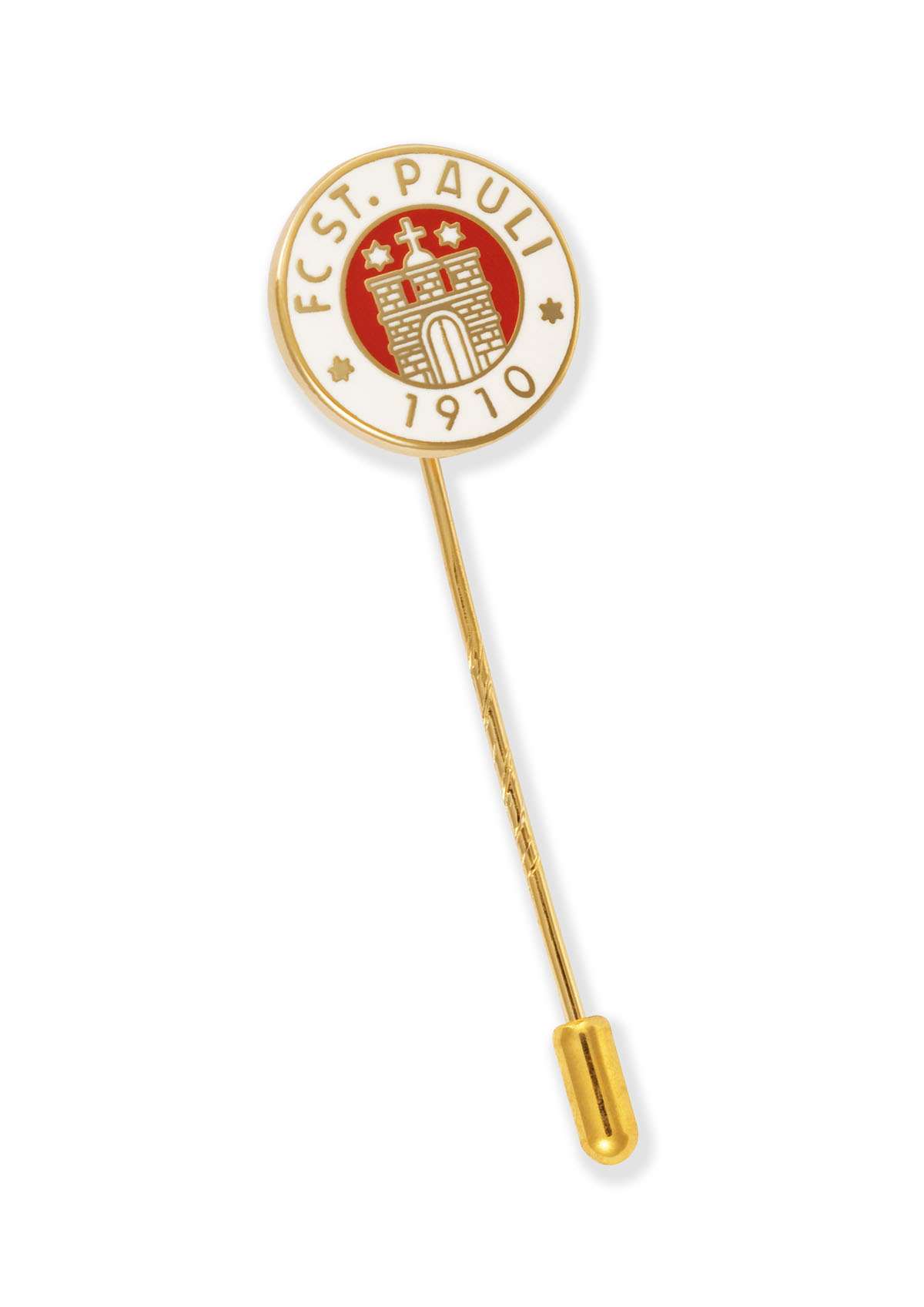 Zeig deine Verbundenheit mit dem FC St. Pauli auf elegante Weise mit der FC St. Pauli Vereinsnadel! Die goldfarbene Nadel ist mit dem klassischen Vereinslogo – dem roten Tor und der Inschrift "FC St. Pauli 1910" – versehen. Perfekt für den Anzug, die Jacke oder die Fan-Sammlung. Ein zeitloses Accessoire für jeden echten Fan, der Stil und Leidenschaft verbinden möchte.