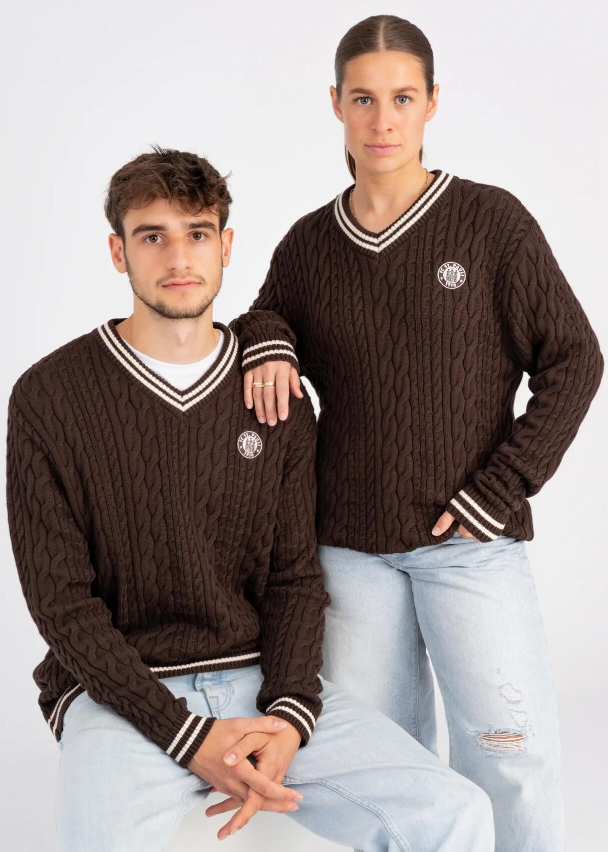 Braun-weiß statt Rentiergrau: Dieser FC St. Pauli Weihnachtspullover bringt dein Fanherz durch die Feiertage. Mit eingestricktem Vereinslogo, Schneeflocken und klarer Farbansage in Rot, Weiß und Braun. 100 % Kiez statt Weihnachtskitsch – für alle, die Haltung lieber tragen als aufsetzen. Und das Ganze angenehm weich – für Couch, Glühweinstand oder Bescherung mit St. Pauli-Faust.
